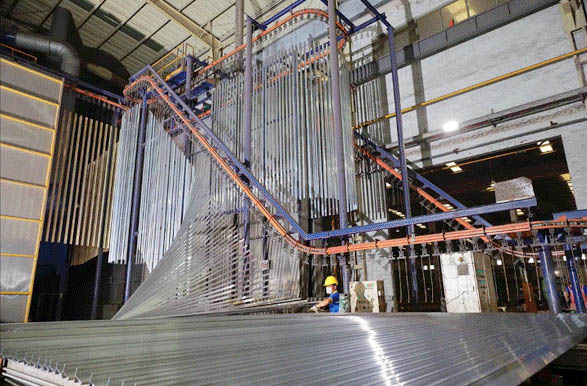 公司現擁有鋁錠熔鑄、均質處理、擠壓、拋光、陽極氧化著色、電泳涂漆、靜電粉末噴涂、氟碳噴涂、木紋噴涂、穿條隔熱、深加工、精加工等系列生產線。